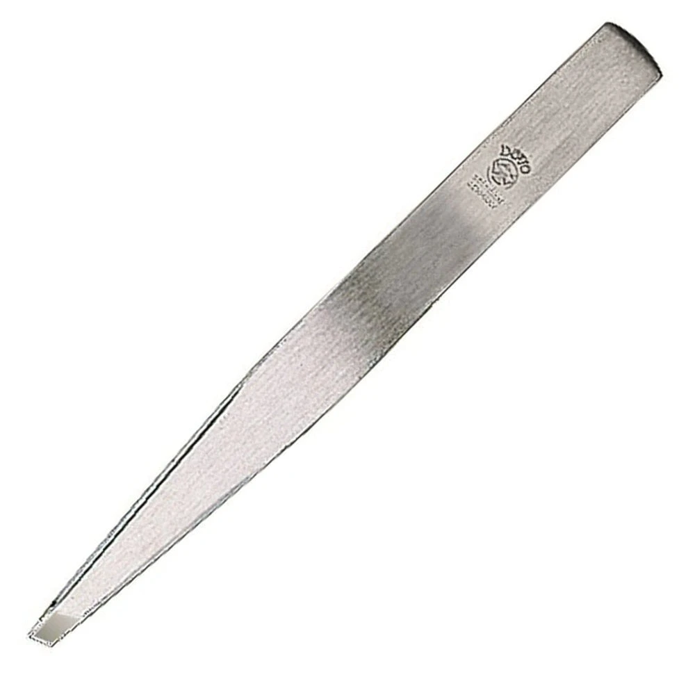 Dovo Professional Slant Tip Tweezers are made in Solingen, Germany from stainless steel with a satin finish. They are crafted with long handles and precise tip alignment that make it easy to grip even the finest hairs. The slanted tip is ideal for grabbing and for light digging.