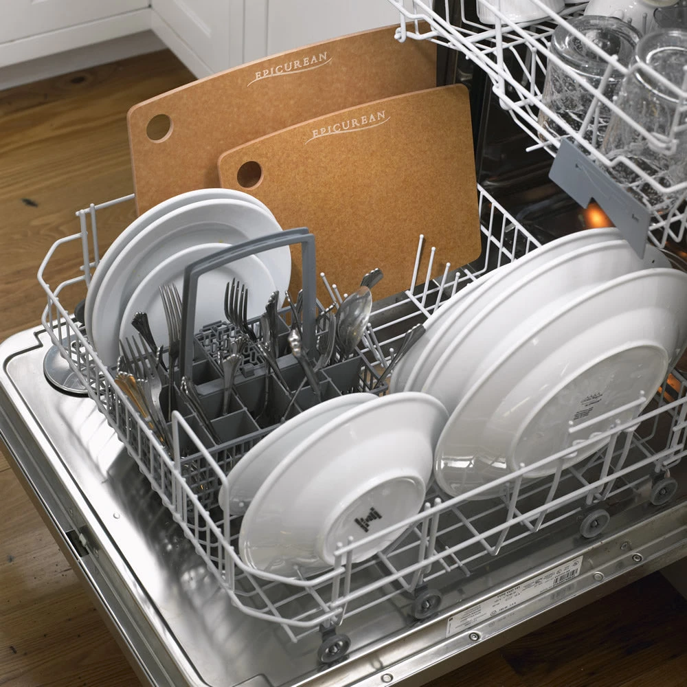As with all Epicurean Cutting Surfaces, Kitchen Boards are NSF (National Sanitary Foundation) Certified, as the nonporous surface is easy to clean and will not harbor bacteria. Unlike traditional wood and bamboo cutting boards, Epicurean cutting surfaces are dishwasher safe.