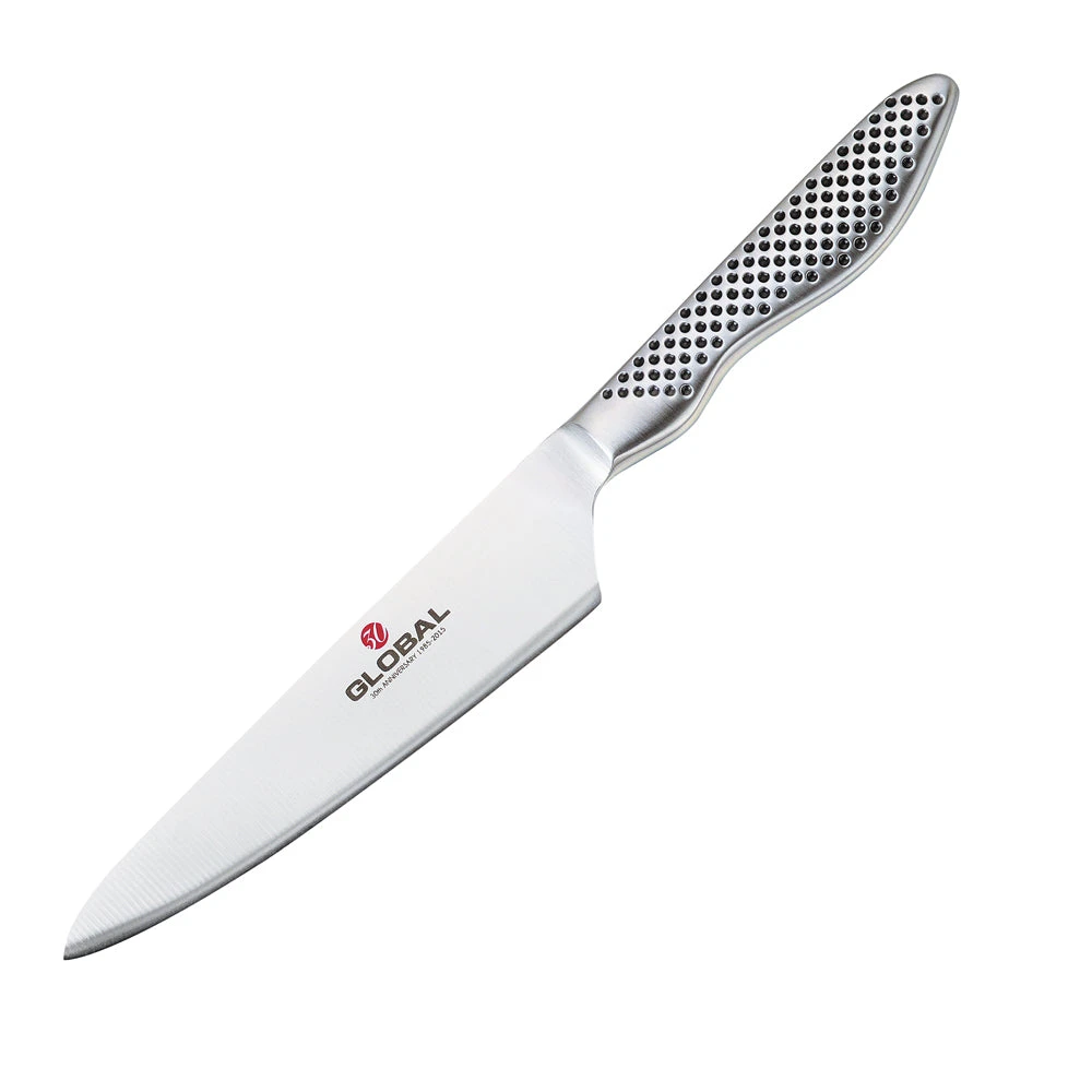 The Global Classic 30th Anniversary Edition 5″ Chef’s KnifeĀ is great for coarse or fine chopping, mincing or dicing virtually any kind of food. The 5-inch Chef’s knife is perfect for those who want a smaller, more manageable blade than the traditional 8-inch, without sacrificing function and versatility. Global is celebrating its milestone 30th anniversary with this special run of limited-edition knives, each marked with a commemorative logo.
