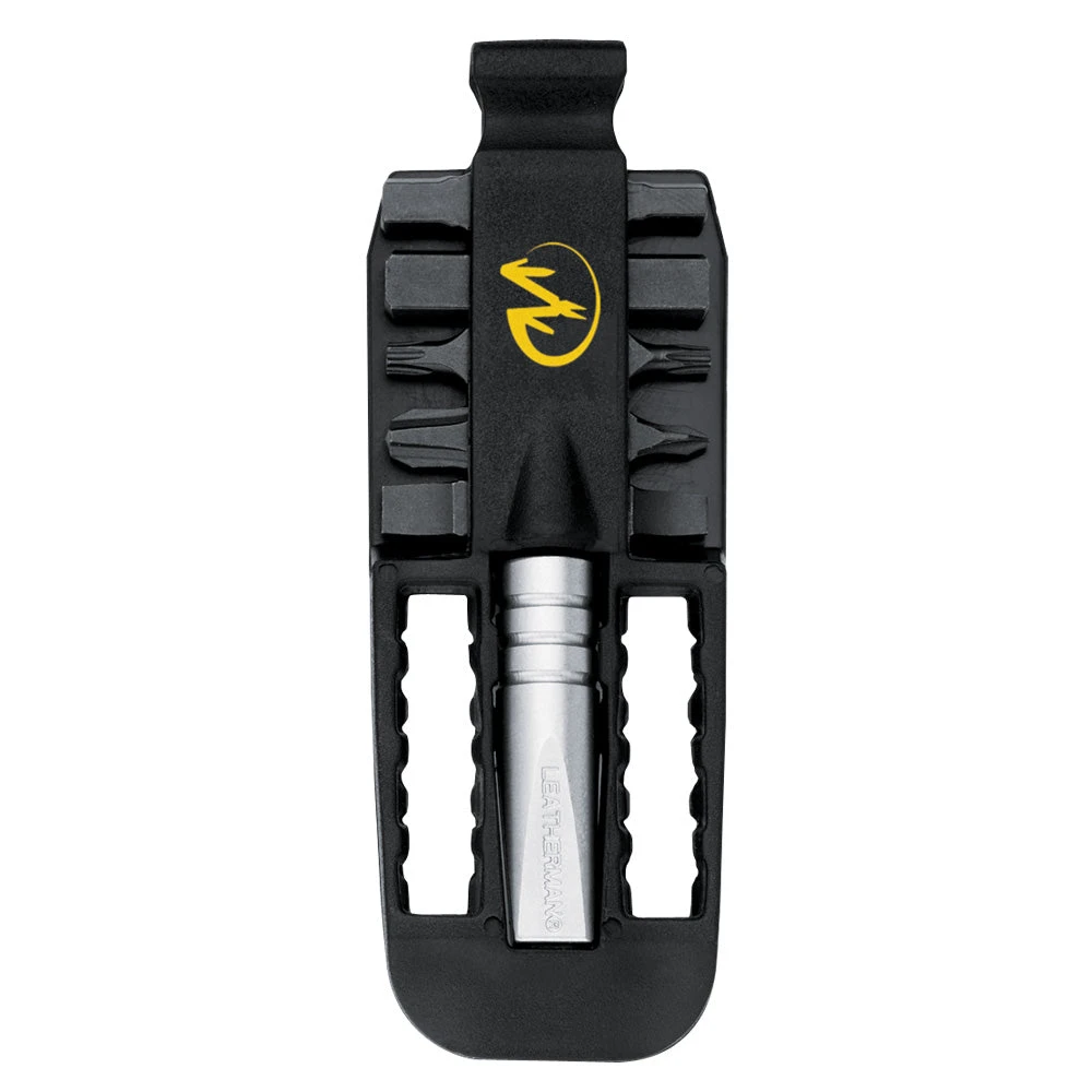The Leatherman Removable Bit Driver adds ten additional tools to your favorite Leatherman multi-tool. This six-piece set comes with five double-ended steel bits, as well as a bit driver and a convenient holder. The driver also works with any standard 1/4″ hex bits, which can be stored in the holder for convenience.