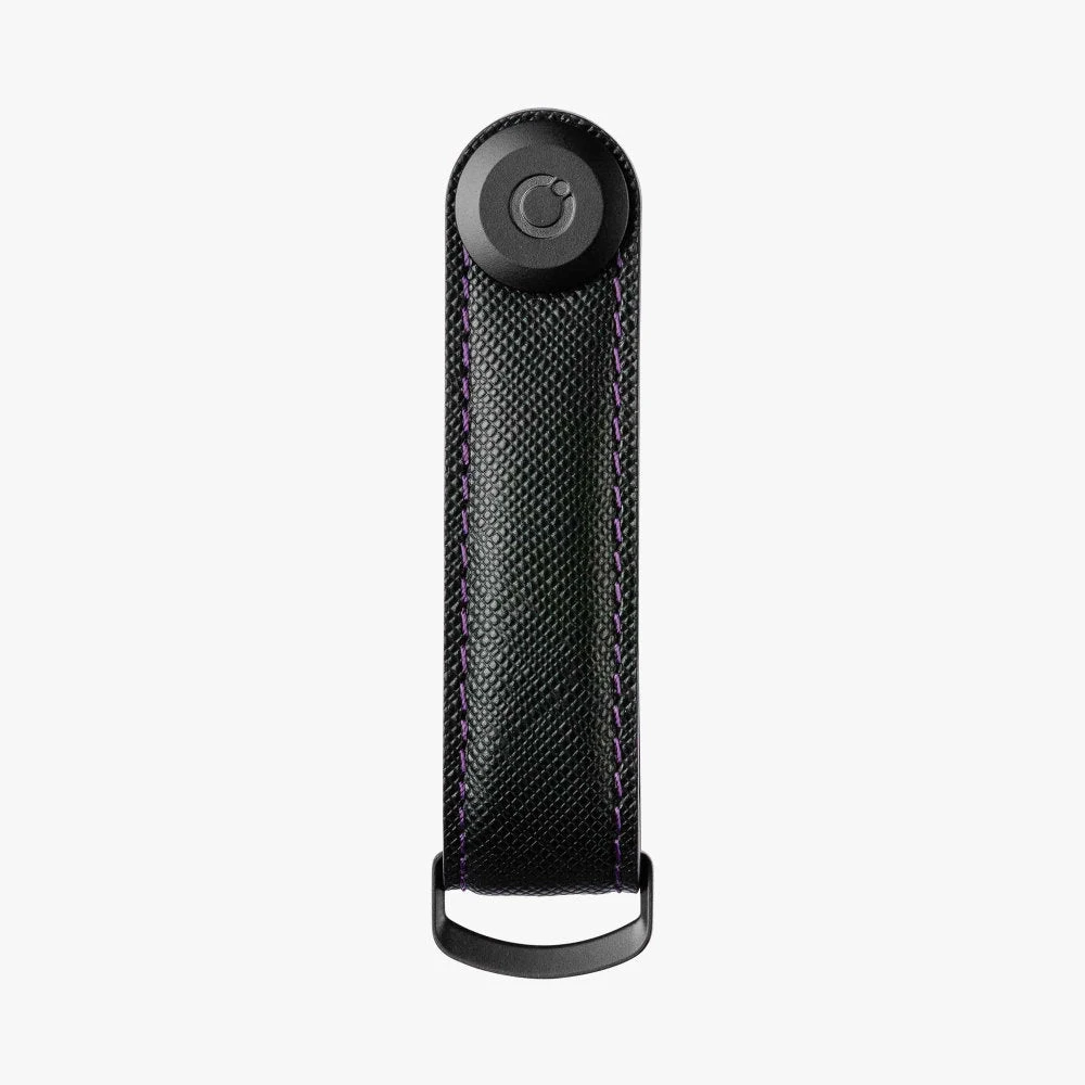 - Made of luxurious black saffiano leather with deep purple leather lining and stitching