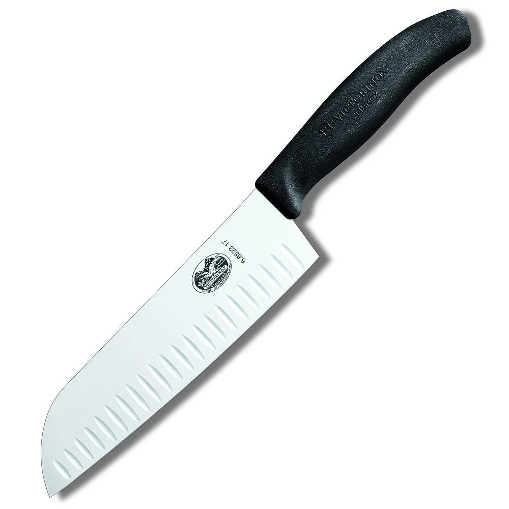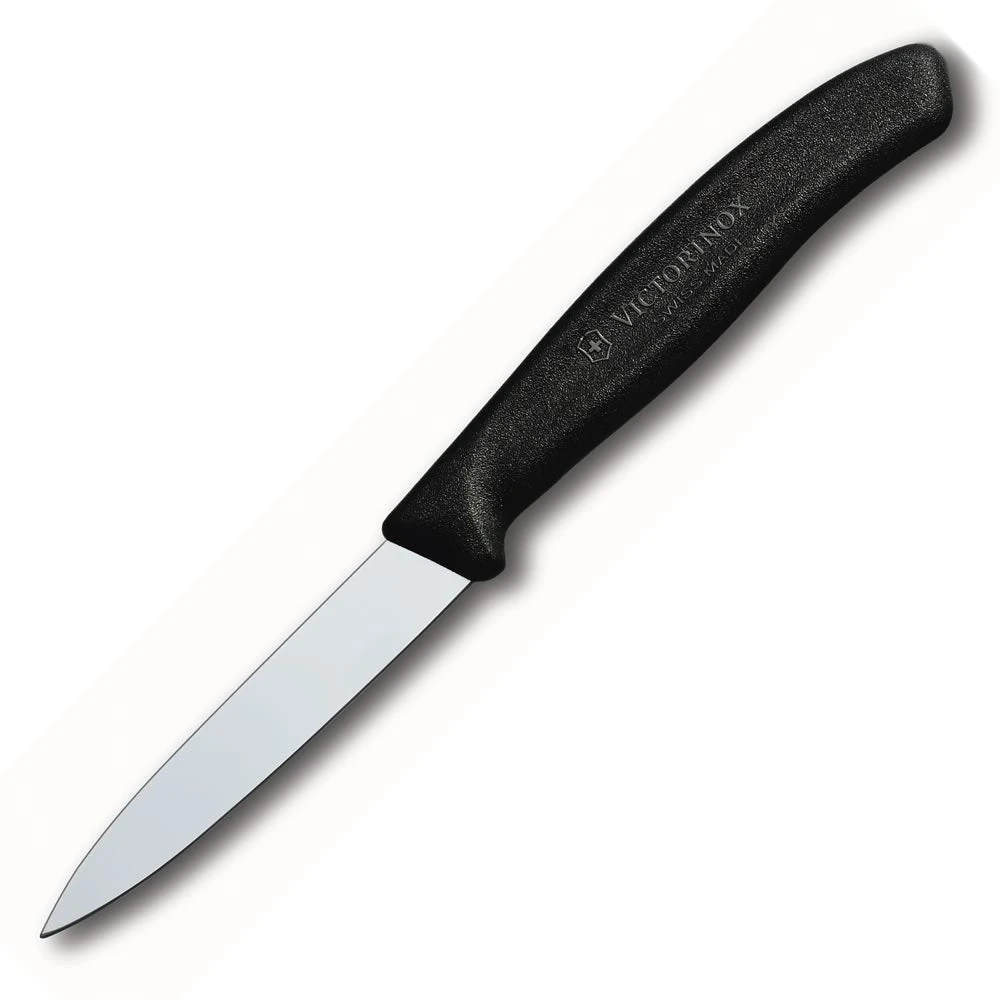 Victorinox Swiss Classic knives all have high carbon, stainless steel blades that are hand finished at Victorinox in Switzerland by skilled craftsmen. Each knife is stamped from a single sheet of metal. The blade is then hardened, tempered, ground, polished, etched and finished. Victorinox uses a special tempering process to produce an edge that can be resharpened over and over again.