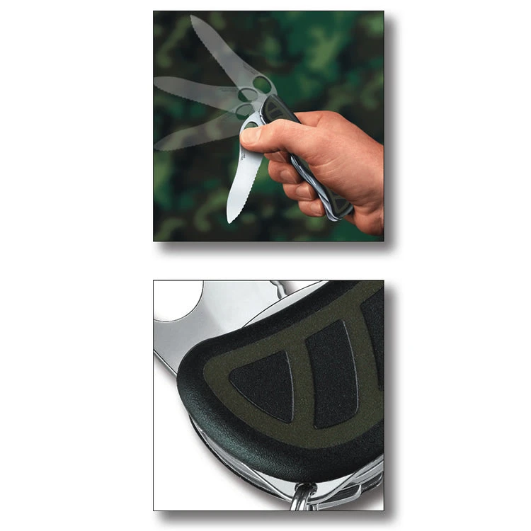 The Victorinox Hunter XT Swiss Army Knife is the perfect hunting knife. It is equipped with dual density handles to make it especially rugged and easy to hang on to in extremely cold or wet conditions, a one-hand locking blade, a gut hook, bone saw, screwdriver and key ring.