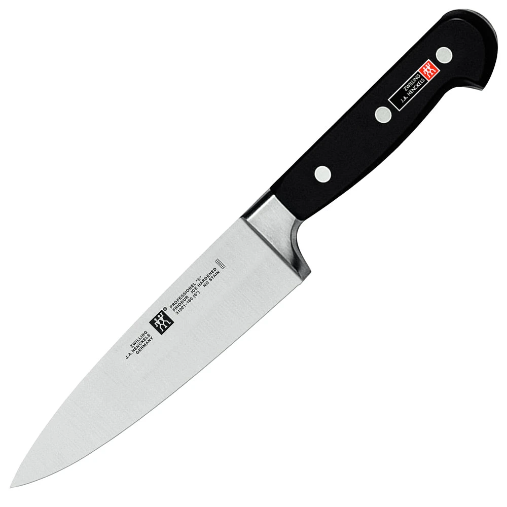 The Zwilling TWIN Professional “S” 6″ Chef’s Knife is great for chopping, dicing, bias cutting and slicing. Rocking the knife handle of this all-purpose knife up and down, with the fingers of your other hand resting lightly on the back of the blade, towards the tip, makes short work of many cutting tasks.